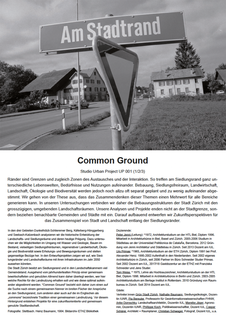 Leitung Master Studio: Peter Jenni, zusammen mit Urs Primas und Tom Weiss, Institut Urban Landscape ZHAW